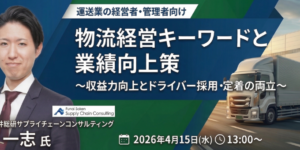 2026年3月31日 《2026年4月15日開催》『物流経営キーワードと業績向上策』セミナー このたび株式会社船井総研サプライチェーンコンサルティング登壇により、運送業の経営者様、管理者様向けのセミナーを開催いたします。ぜひご参加ください。 開催日時:2026年4月15日(水) 13 ... 続きを読む