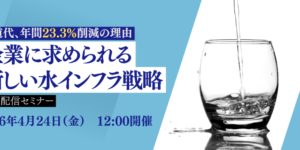 2026年4月14日 《ランチタイム開催》水道代、年間23.3%削減の理由『新しい水インフラ戦略』録画配信セミナー ※本セミナーは2025年10月23日に開催したセミナーの録画配信です。 上水・中水・下水すべての「環境機器関連事業」を幅広く展開されている株式会社ダイキアクシス様にご登壇いただき、地下水の飲料化に関し ... 続きを読む
